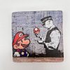 Banksy heeft in andere werken kritiek geuit op de monarchie, zoals in “Monkey Queen” (2003), waarin hij de koningin afbeeldt als een aap, en “Queen Ziggy” (2012), waar hij de koningin portretteert met de iconische bliksemschicht van David Bowie’s alter ego Ziggy Stardust. Deze werken tonen zijn voortdurende uitdaging van traditionele machtsstructuren en symbolen in het Verenigd Koninkrijk.