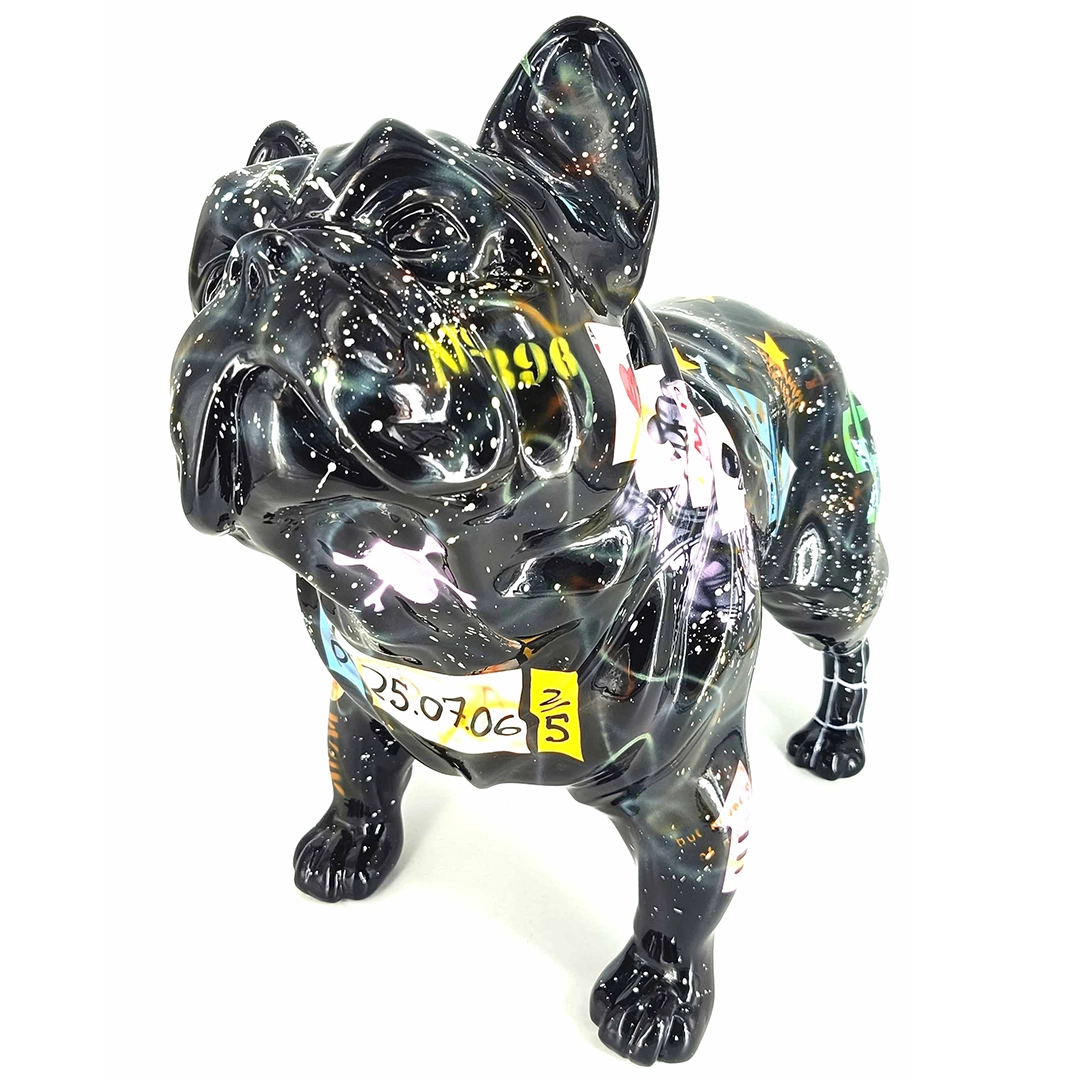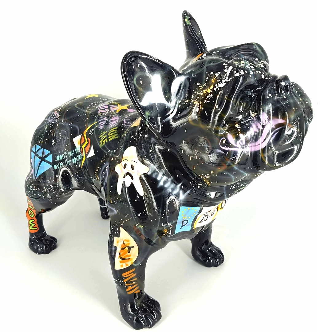 Deze bulldog is niet zomaar een beeld – het is een statement. Met zijn krachtige houding en opvallende design voegt hij direct karakter toe aan elke ruimte. Of je nu kiest voor een kleurrijke popart-uitvoering of een meer ingetogen variant, dit kunstzinnige object trekt gegarandeerd de aandacht.