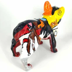 Deze bulldog is niet zomaar een beeld – het is een statement. Met zijn krachtige houding en opvallende design voegt hij direct karakter toe aan elke ruimte. Of je nu kiest voor een kleurrijke popart-uitvoering of een meer ingetogen variant, dit kunstzinnige object trekt gegarandeerd de aandacht.