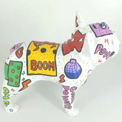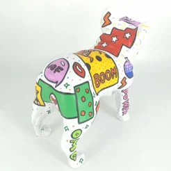 Deze bulldog is niet zomaar een beeld – het is een statement. Met zijn krachtige houding en opvallende design voegt hij direct karakter toe aan elke ruimte. Of je nu kiest voor een kleurrijke popart-uitvoering of een meer ingetogen variant, dit kunstzinnige object trekt gegarandeerd de aandacht.