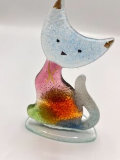 Vrolijk, kleurrijk en vol karakter – dit glazen kattenbeeld “Kat Ritmo” brengt een glimlach in elke ruimte. Met haar sierlijke houding, grote oren en nieuwsgierige blik straalt deze kat een charmante eigenwijsheid uit die elke kattenliefhebber direct herkent.
