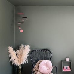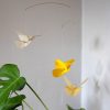 De mobiel is plat verpakt. Til het touwtje op en de mobiel vouwt uit tot een driedimensionaal hangend beeldhouwwerk.