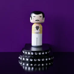 Freddie Mercury. een van de grootste rocklegendes uit de geschiedenis. heeft een grote indruk op de wereld achtergelaten. Zijn ongelooflijke stembereik gecombineerd met zijn flamboyante en theatrale persoonlijkheid. maakte hem tot een artiest in zijn eigen klasse. Het ontwerp van de kokeshipop is gebaseerd op Freddie’s meest iconische outfit; het gele militaire jasje dat hij droeg tijdens de uitverkochte Europese ‘Magic’-tour in 1986.