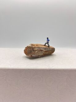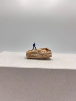 Eén kleine figuur, vastberaden in beweging, loopt over een robuuste ‘berg’ van versteend hout. “De Wandelaar” is een miniatuurkunstwerk van Herma Kraan waarin avontuur, rust en symboliek samenkomen. Met slechts 2 cm hoogte en 5 cm lengte vertelt dit beeldje het verhaal van onderweg zijn — misschien letterlijk, misschien figuurlijk.