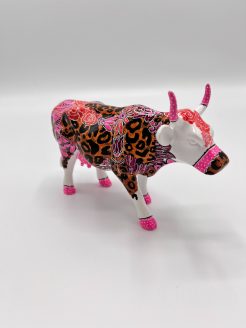 Breng een vleugje elegantie en wilde charme in je interieur met het unieke “Pink Panter” koe uit de CowParade-collectie, ontworpen door de getalenteerde Ellen Moorman. Dit beeldje, rijkelijk versierd met een opvallende combinatie van panterprint en roze bloemenmotieven, voegt een speelse en stijlvolle flair toe aan elke ruimte.