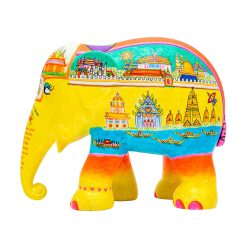Nancy was zeer vereerd toen ze werd uitgenodigd om te ontwerpen voor Elephant Parade. Haar ontwerp is geïnspireerd op de bezienswaardigheden van Bangkok die de stad van anderen onderscheiden – de markten, tempels, het rivierleven en de fabelachtig lange naam – zoals afgebeeld op haar kaarten van de afgelopen 41+ jaar.