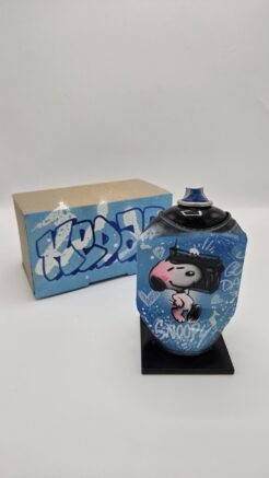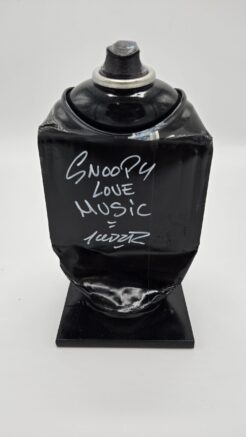 Fantastisch en uniek werk van KedarOne. Hier is geen tweede van! Het is een mix-art popart beeld. Een door KedarOne gebruikte spuitbus voor een graffiti, is super gaaf behandeld tot kunstwerk met Snoopy en is verankerd op een zwaar statief. Snoopy oogt stoer en vrolijk met zijn ouderwetse muziekinstallatie op zijn schouder. Houd je net als wij van Snoopy? Dan ga je heel blij worden van dit unieke stuk.