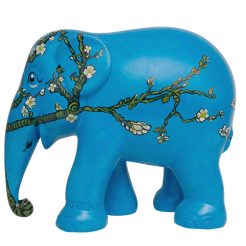 Geïnspireerd door de wereldberoemde ‘Amandelbloesem’ van Vincent van Gogh, biedt ‘Twisted Almond Blossom’ een frisse kijk op dit klassieke meesterwerk, belichaamd in de vorm van een olifantenstandbeeld. Deze artistieke onderneming daagt onze perceptie uit en vraagt zich af of we getuige zijn van een grote wending in de wereld of deze gewoon vanuit een andere hoek bekijken. Naast zijn schoonheid als decoratieve olifant, staat hij ook symbool voor verandering en perspectief, waardoor hij een boeiende aanvulling is op elke verzameling met olifanten versierde stukken.