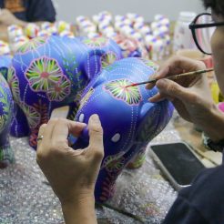 Het Water Flowers Olifantbeeld brengt de rustgevende uitstraling van een watervijver naar uw ruimte. Het is gemaakt om sereniteit te symboliseren en heeft tinten van diepblauw vermengd met het levendige groen en roze van waterbloemen. Dit betoverende olifantenontwerp is een belichaming van vrede en schoonheid en resoneert met iedereen die de rustige momenten in de natuur waardeert. Ideaal om een vleugje Aziatische decoratie toe te voegen of als een attent olifantscadeau, het verrijkt elke omgeving met zijn rustige sfeer. Perfect voor wie op zoek is naar olifantenbeelden voor in huis of een elegant olifantensculptuur.