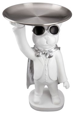 Witte Hond Figurine “Hero Dog” met schaaltje gemaakt van polyresin